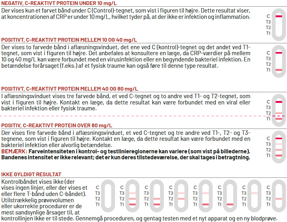 Hvis resultatet er positivt, og CRP er højere end 10 mg/L, skal du se afsnittet "Fortolkning af resultatet" og kontakte din læge hurtigst muligt, da videre undersøgelse og antibiotikabehandling kan være nødvendigt.